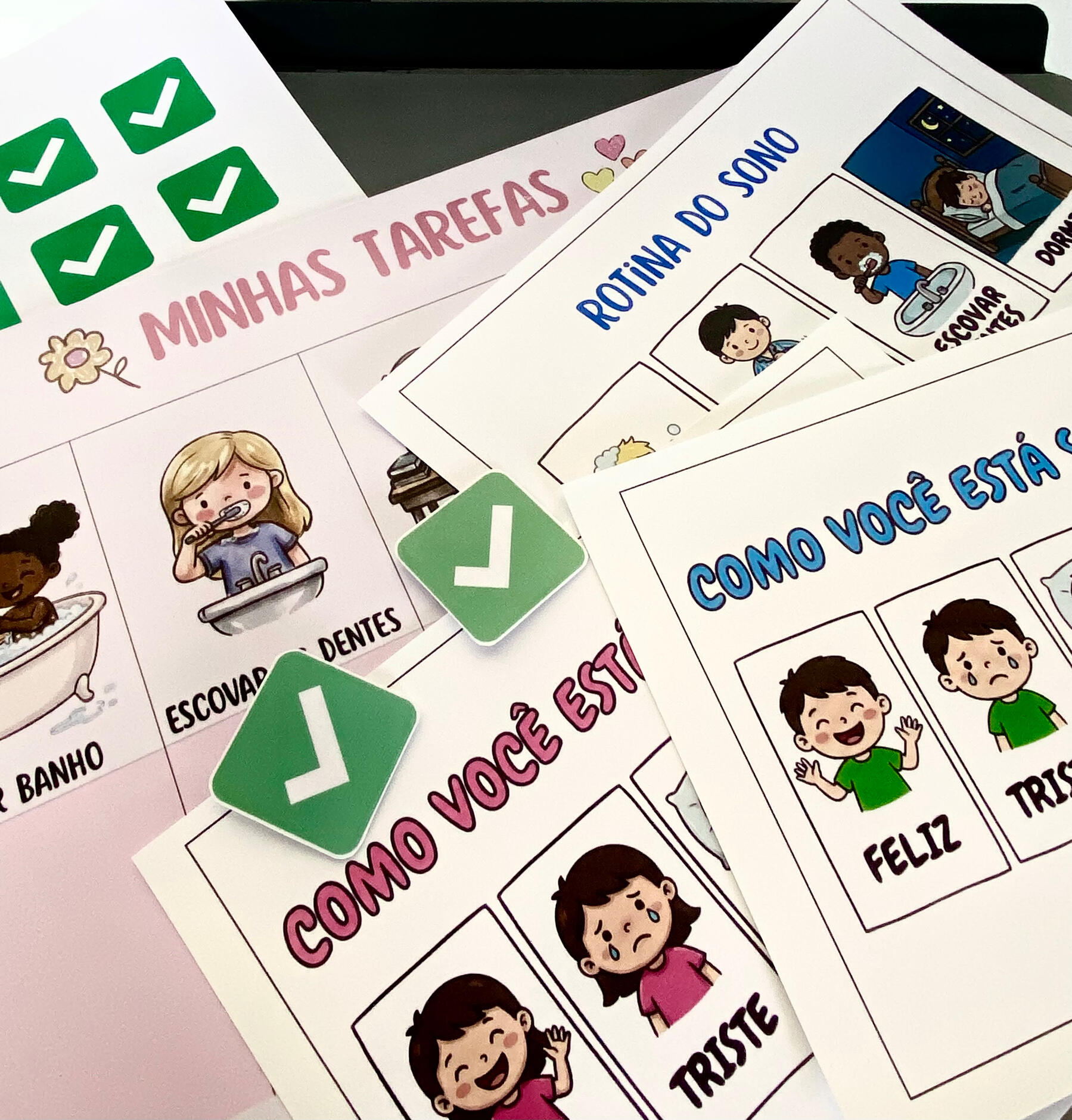 O Kit ROTINA COM AFETO foi criado para tornar o dia a dia mais leve, visual e previsível para a criança, facilitando a cooperação de forma natural.